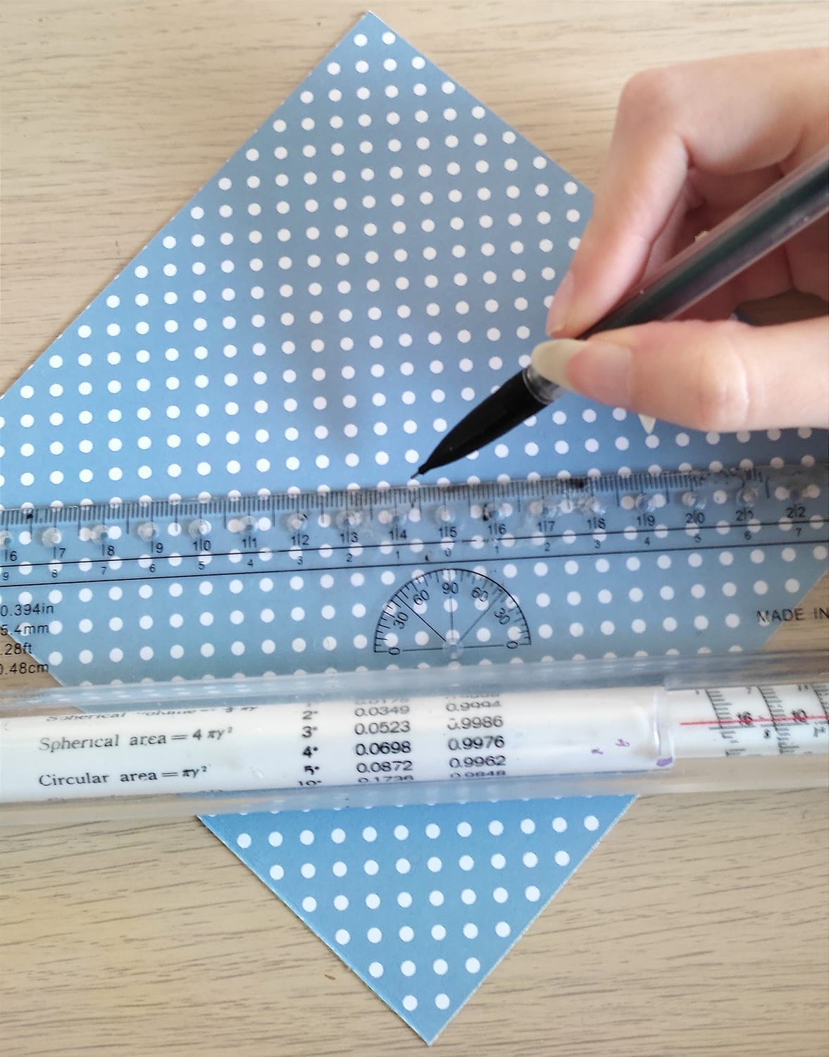 Marquez le milieu de la feuille avec votre crayon à l'aide des diagonales (utilisez la règle pour une meilleur précision) ATTENTION : le côté que vous marquerez sera l'intérieur de l'enveloppe.