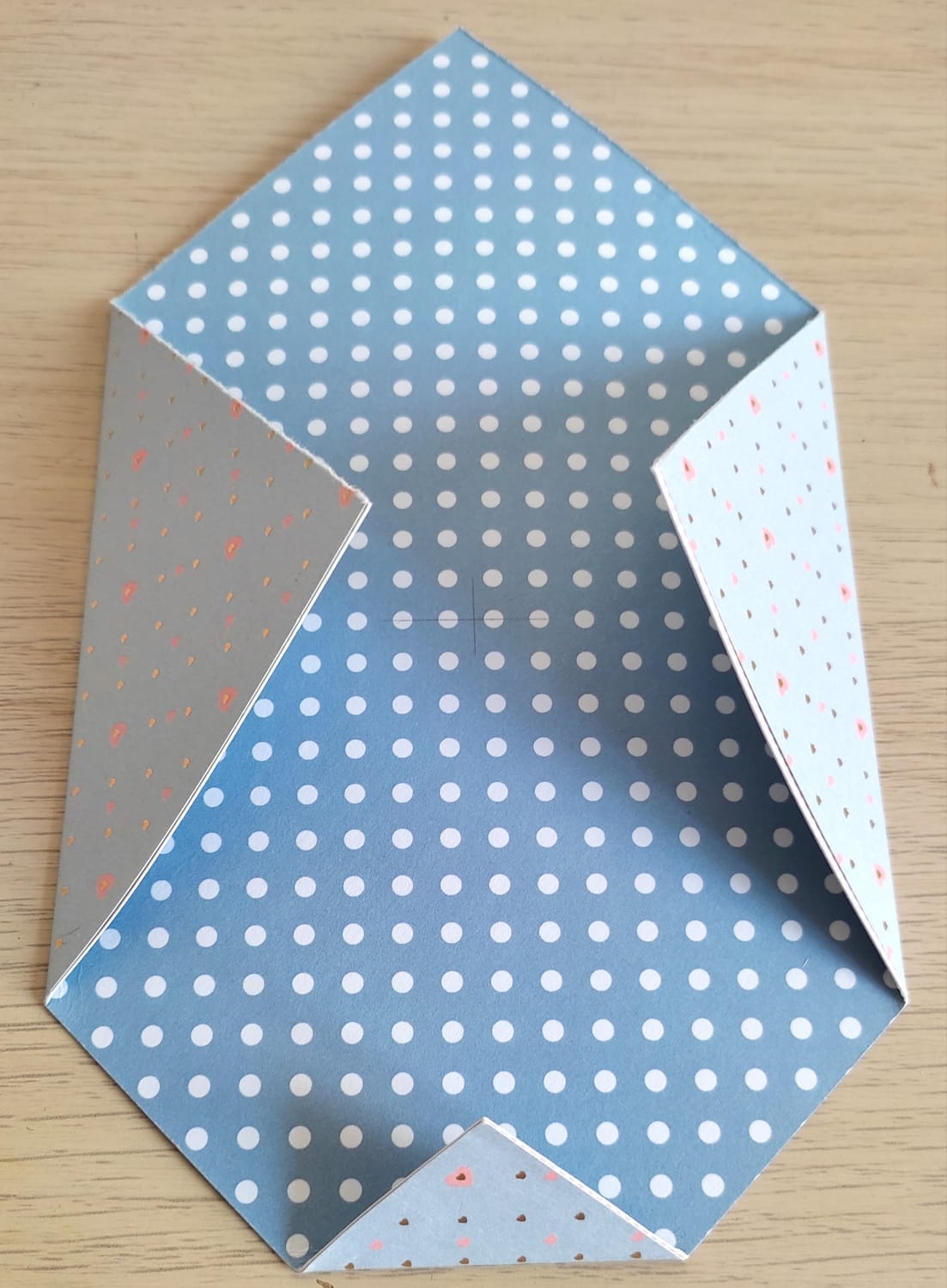 Pliez à présent le dernier côté non plié, mais attention : contrairement à son côté opposé, il doit avoir la pointe qui atterrit sur le point central.